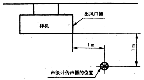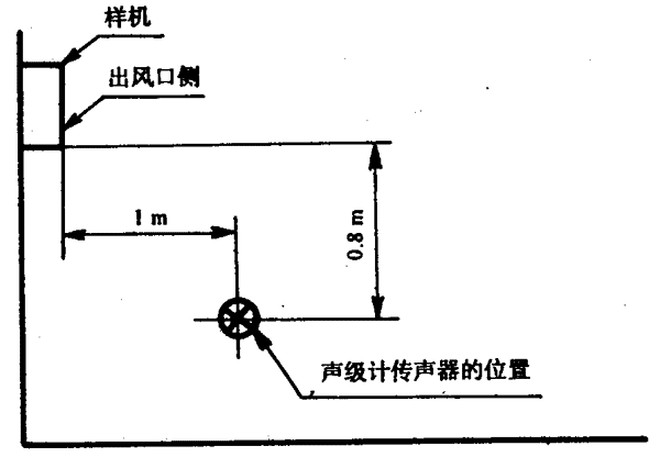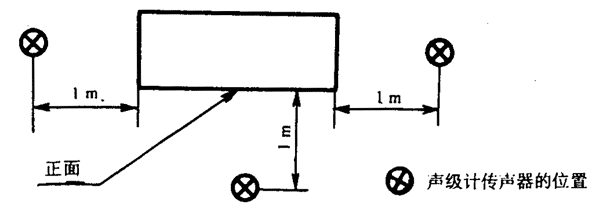 按8.3.3規(guī)定的1~4點(diǎn)的位置點(diǎn),當(dāng)機(jī)組高度不超過1m時(shí),其測(cè)點(diǎn)高度為1m;當(dāng)機(jī)組高度大于1m時(shí),其測(cè)點(diǎn)高度為1.5m。對(duì)于大型機(jī)組,可按8.3.4的規(guī)定增加附加測(cè)點(diǎn),其測(cè)點(diǎn)高度為1.5m。當(dāng)某測(cè)點(diǎn)處于機(jī)組的出風(fēng)口或冷卻風(fēng)扇位置處,風(fēng)速大于4級(jí)時(shí),可在偏離風(fēng)口45℃處進(jìn)行測(cè)量。