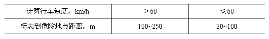6.11.2.3設(shè)置在道路邊緣的警告標(biāo)志到危險(xiǎn)地點(diǎn)的距離,根據(jù)道路的計(jì)算行車速度,按表1選取。