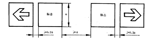 7.2.2兩個(gè)相反方向的正方形標(biāo)志并列設(shè)置時(shí),為避免混淆,在兩個(gè)標(biāo)志之間至少應(yīng)留有一個(gè)標(biāo)志的間隙,如圖9所示。