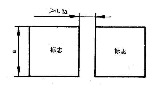 7.2.1兩個(gè)或更多的正方形消防安全標(biāo)志一起設(shè)置時(shí),各標(biāo)志之間至少應(yīng)留有標(biāo)志公稱尺寸0.2倍的間隙,如圖8所示。