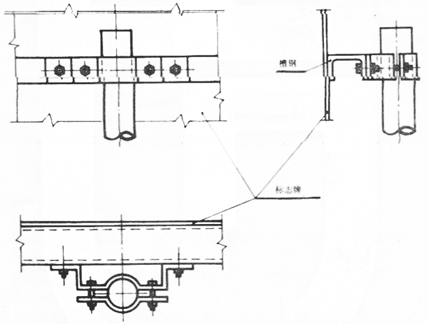 7.3.3柱式設(shè)置的消防安全標(biāo)志牌應(yīng)用螺栓、管箍等牢固地固定在標(biāo)志桿上。 固定方法可參照圖12進(jìn)行。