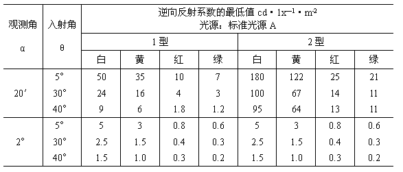 c.逆向反射標(biāo)志的逆向反射系數(shù)小于最小反射系數(shù)的50%(參見附錄C中表C2);