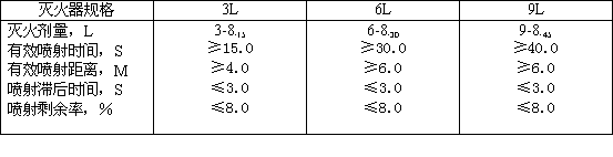 在使用溫度范圍內,滅火器的噴射性能應符合下列規(guī)定: