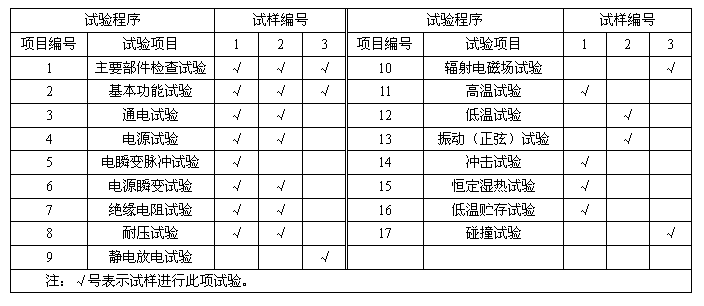 4.1.2 本標(biāo)準(zhǔn)規(guī)定的試驗(yàn)是型式試驗(yàn),受試產(chǎn)品試樣數(shù)應(yīng)不少于三臺(tái),并在試驗(yàn)前予以編號(hào)。4.4.1表5中,第1~10項(xiàng)試驗(yàn)應(yīng)在11~17項(xiàng)試驗(yàn)之前進(jìn)行;1、2項(xiàng)試驗(yàn)必須首先進(jìn)行。
