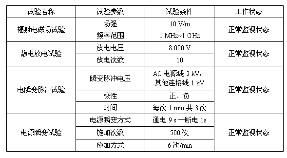 表4 電干擾環(huán)境試驗(yàn)