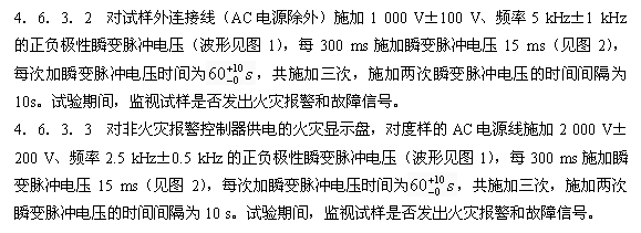 3.2.4 火災(zāi)顯示盤應(yīng)能耐受住表4所規(guī)定的電干擾條件下的各項(xiàng)試驗(yàn),試驗(yàn)期間及試驗(yàn)后的性能應(yīng)能滿足本標(biāo)準(zhǔn)第4章有關(guān)試驗(yàn)的要求。