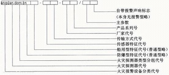 火災(zāi)探測(cè)器產(chǎn)品型號(hào)編制方法如下: