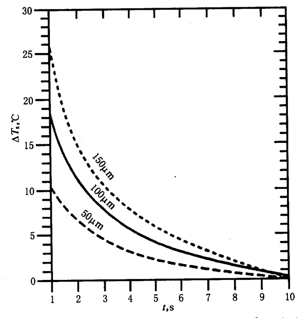 圖3s和圖3b給出金屬涂敷層的效果數(shù)值,該值是在無涂敷層金屬燒傷閾之上的溫度增量,欲得到有涂敷層金屬的燒傷閾,必須把圖3a或圖3b中的溫度增量△T