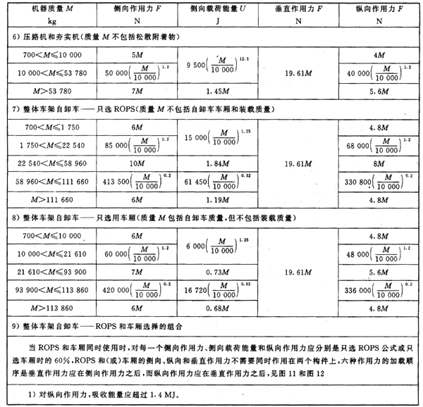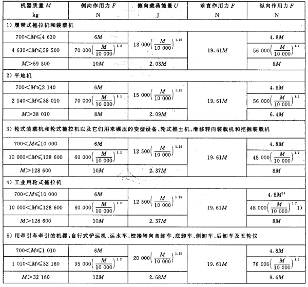 d) ROPS應(yīng)符合本標(biāo)準(zhǔn)規(guī)定的各種機(jī)器最大質(zhì)量M的性能要求;