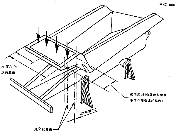 6.2.4 對大于兩柱的ROPS,載荷作用點(diǎn)應(yīng)位于DLV前后界面之外80mm平面的垂直投影之間(見圖2)。