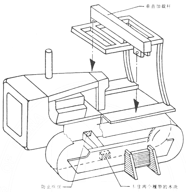 6.3.1 側(cè)向載荷除去后,垂直載荷應(yīng)加在ROPS的頂部,工業(yè)用輪式拖拉機(jī)在垂直載荷前應(yīng)先加縱向載荷。