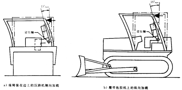 6.2.5 司機(jī)座椅偏離機(jī)器中心線時(shí),載荷應(yīng)加在靠近座椅一側(cè)的最外邊。如果司機(jī)座椅在機(jī)器中心線上時(shí),ROPS的安裝使從左或從右加載會產(chǎn)生不同的力-變形,則應(yīng)選擇對ROPS、機(jī)架具有最惡劣的加載條件的一側(cè)進(jìn)行加載。