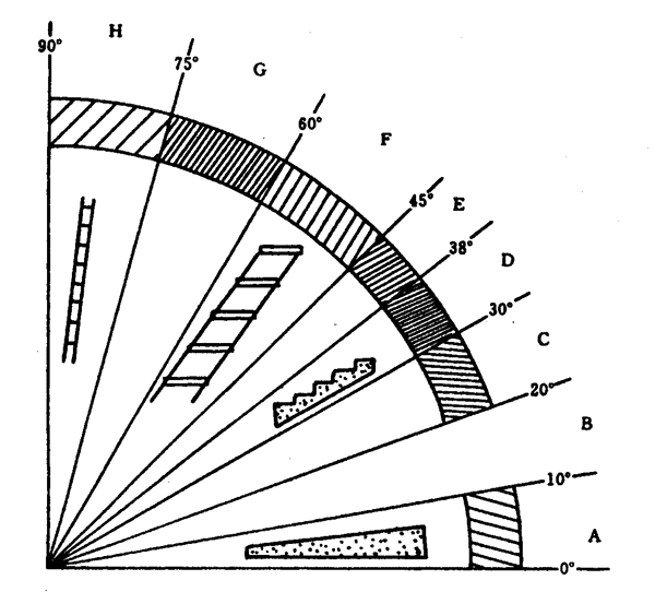 A―坡道;B―避免的范圍;C、D、E―樓梯,推薦D;F、G―階梯,推薦F;H―直梯