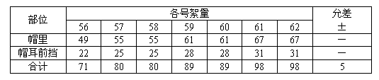 4.2.1普通防寒帽的成品尺寸,按表1規(guī)定。