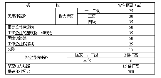注:①表中未注明的企業(yè)建筑物、構(gòu)筑物與庫內(nèi)建筑物、構(gòu)筑物的安全距離,應(yīng)按現(xiàn)行的國家標(biāo)準(zhǔn)《建筑設(shè)計(jì)防火規(guī)范》執(zhí)行。