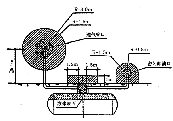 第2.2.4條 甲、乙類油品的汽車油罐車密閉卸油接頭處與油罐、油泵房的間距可不受限制,但與其它建筑物、構(gòu)筑物的防火間距應(yīng)按甲、乙類油品儲(chǔ)罐的要求確定。
