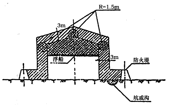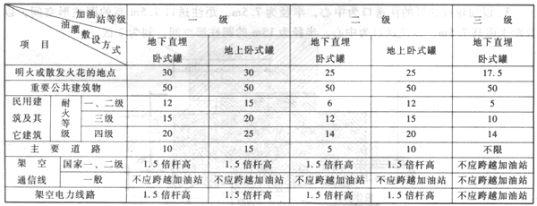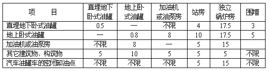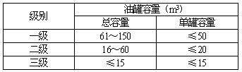 注:①表中油罐,系指儲(chǔ)存甲、乙類油品的立式固定頂鋼油罐。對于內(nèi)浮頂罐、儲(chǔ)存丙類油品的立式固定頂罐、容量大于50m