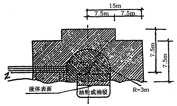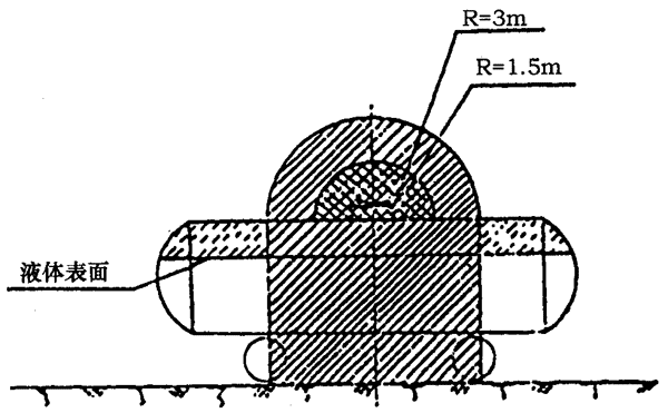2.以加油機(jī)中線為中心,上面半徑為3m、下面半徑為4.5m,高度為從地坪向上至加油機(jī)頂上0.15m的圓錐形空間,劃為2區(qū)。