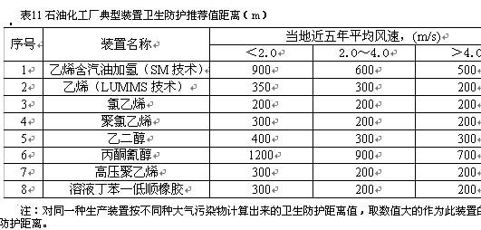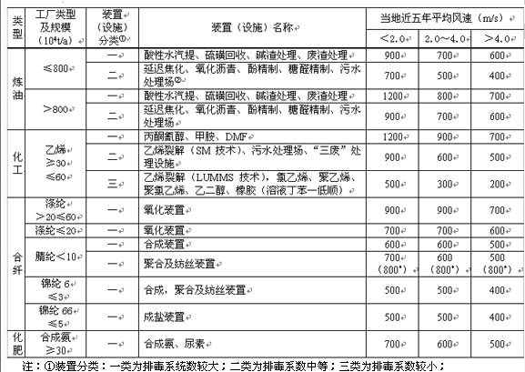 3 不是按整個石化廠而是按不同生產(chǎn)裝置給出衛(wèi)生防護(hù)距離。