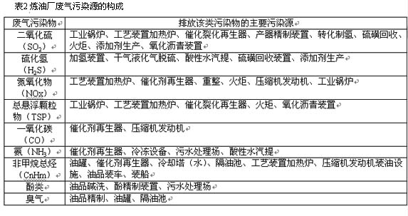 煉油廠一般均排放多種大氣污染物,無組織排放與有組織排放共存,根據(jù)對五個典型廠調(diào)查分析,得出煉油廠廢氣污染源構(gòu)成,見表2。