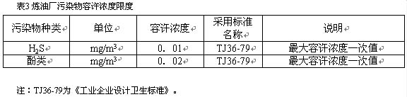 1982年曾對勝利煉油廠、錦州煉油廠和安慶煉油廠進(jìn)行了污染源調(diào)查,按排毒系數(shù)大小排列,其中硫化氫和酚類較大,作為確定衛(wèi)生防護(hù)距離的污染因子。此次修訂也把其列為主要污染因子。