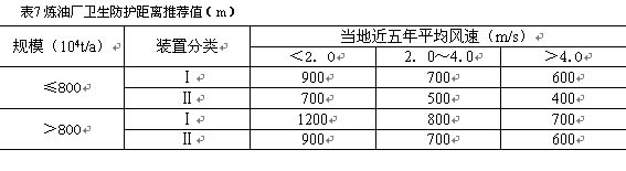 煉油廠衛(wèi)生防護(hù)距離的推薦值見表7。