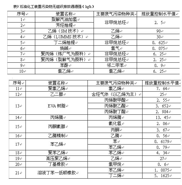 石油化工廠典型裝置無組織排放源源強(qiáng)見表9。