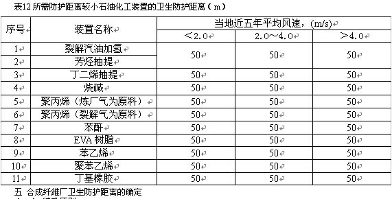 所需衛(wèi)生防護(hù)距離較?。?le;50m)的生產(chǎn)裝置未列入正文表2.0.1中,其衛(wèi)生防護(hù)距離推薦值見表12,以供參考。