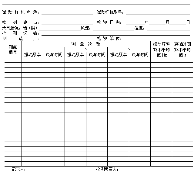表B7 振動頻率衰減時間測試記錄及結(jié)果表