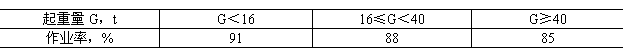 起重機(jī)的作業(yè)可靠性應(yīng)在滿足表5作業(yè)率要求的條件下,平均無(wú)故障時(shí)間不小于50h。