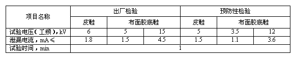 4.2.1電絕緣皮鞋和電絕緣布面鞋:當(dāng)泄漏電流為0.3mA/kV時(shí),應(yīng)滿足表4的要求。