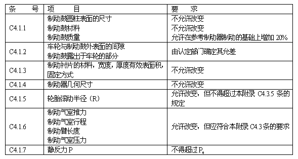 對(duì)認(rèn)定的車(chē)輛,應(yīng)檢驗(yàn)其制動(dòng)器技術(shù)參數(shù)是否符合表C1要求:
