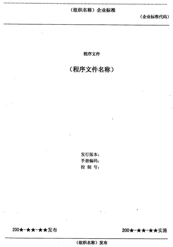 ●手冊封面一一注明手冊名稱,發(fā)行版本、修改碼、手冊編碼、受控編碼、組織名稱、手冊編碼可用企業(yè)代碼代替。表8