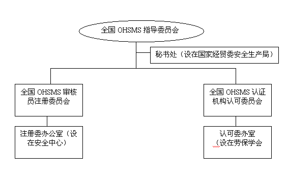 我國(guó)OHSMS認(rèn)證工作管理機(jī)構(gòu)設(shè)置: