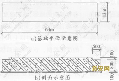 圖1 基礎(chǔ)平面及剖面示意圖