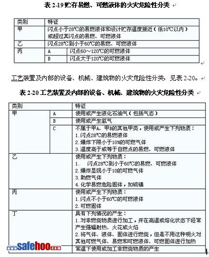 1)火災(zāi)危險(xiǎn)性分類