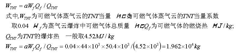 3.2.1 石油液化氣蒸氣云爆炸的TNT當(dāng)量WTNT