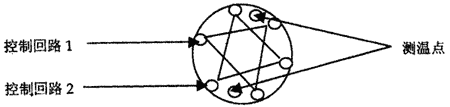 2.1.2采用雙回路或者三回路控制,測溫點(diǎn)均勻分布,視設(shè)備構(gòu)造情況而定,見圖3。這樣,可保證電源供電的均衡性,也可以保證溫控自如。