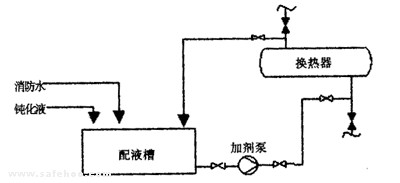 c)通過(guò)加劑泵由臨時(shí)管線注入換熱器,再由換熱器上部返回配液槽;