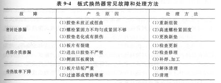 板式換熱器的主要故障和處理方法見(jiàn)表9—4。