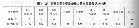 尿素裝置投產(chǎn)初期重大停車事故按廠逐年平均統(tǒng)計見表7—26。