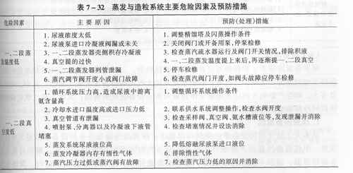 蒸發(fā)與造粒系統(tǒng)存在的危險因素及預(yù)防措施,見表7—32。