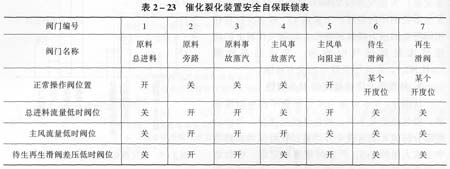 以常規(guī)的高低并列式催化裂化裝置為例,通常設(shè)置有以下幾個安全自保聯(lián)鎖,見表2—23、圖2—10。