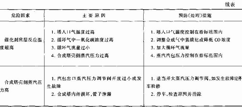 轉(zhuǎn)化爐在高溫下運(yùn)行,運(yùn)行條件比較苛刻。主要故障有催化劑中毒、結(jié)碳、粉碎以及爐管超溫、過(guò)熱損壞等。廢熱鍋爐存在主要危險(xiǎn)是液位低、水循環(huán)倍率低,引起的爐管爆管。詳見(jiàn)表7—43。