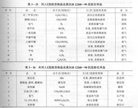 (3)PTA裝置未列入《危險(xiǎn)貨物品名表》GBl2268—'90的危險(xiǎn)化學(xué)晶。