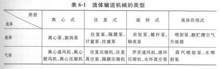 由于輸送任務(wù)不同、流體種類多樣,工藝條件復(fù)雜,流體輸送機(jī)械也是多種多樣的,按照工作原理可分為4類,如表6—1所示。