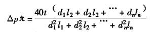 不同口徑管道允許壓力降計(jì)算公式為: