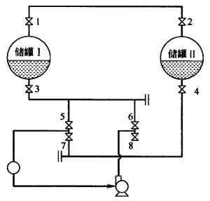 同理,將操作程序2中閥組操作改為“關(guān)閉閥門5和8,開啟閥門4和6”,即可將儲罐Ⅱ中的液態(tài)石油氣倒入儲罐Ⅰ。