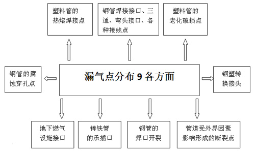 ? 燃?xì)夤艿劳度脒\(yùn)行后,因腐蝕、管道接口、密封材料老化、安裝質(zhì)量不良、機(jī)械振動(dòng)、管道的熱脹冷縮等原因,產(chǎn)生穿孔、裂縫或斷裂造成燃?xì)庑孤H細(xì)庑孤┮院?,?huì)沿著一定的通道傳播到地面或建構(gòu)筑物內(nèi),當(dāng)泄漏的燃?xì)膺_(dá)到爆炸極限,遇火源則產(chǎn)生火災(zāi)、爆炸和一系列次生災(zāi)害,導(dǎo)致嚴(yán)重的人員傷亡和財(cái)產(chǎn)損失。