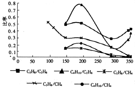 圖1 平莊六家礦褐煤C2H4/ C2H6曲線